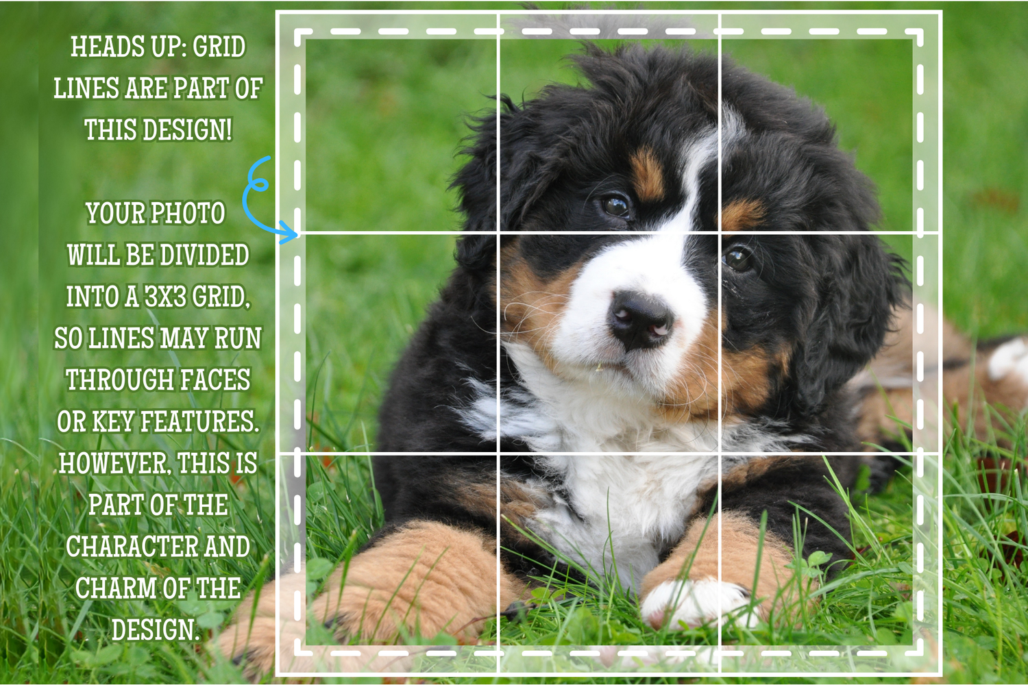 Because the image is divided into a 9x9 grid, I take extra care to avoid placing grid lines through faces or important features whenever possible.